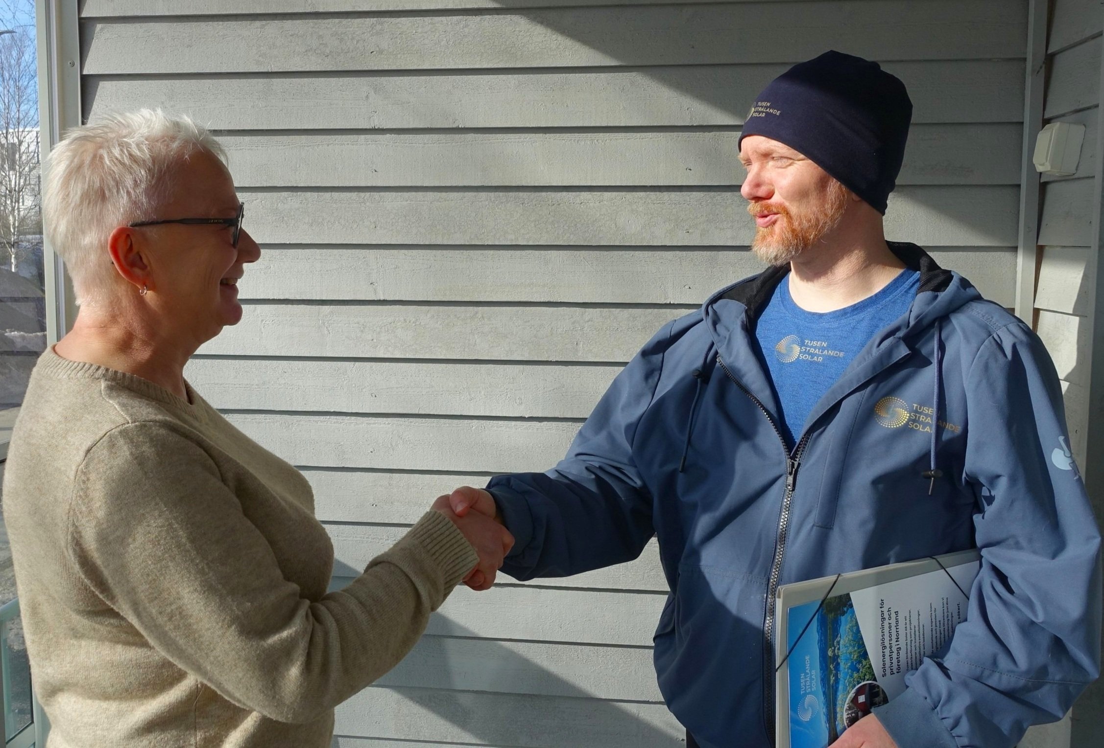 “Monteringen utfördes smidigt och snabbt av kunniga montörer. Har fått god hjälp och service i efterhand med internetkontakten på min dator. Jag kan verkligen rekommendera företaget TS Solar. Jag behöver ingen spänning från TV-serier för jag har ju solceller från TS Solar.”