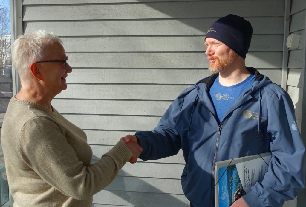 “TS Solar har varit väldigt stabila och fina i bemötandet som totalentreprenör. De har smidigt löst alla delar i processen och tagit sig tid att förklara alla moment samt hitta lösningar som behövdes i monteringen av solcellerna på vårt tak. Uppskattad snabb återkoppling på mejl och telefon under processen. Monteringen var snabb, effektiv och noggrann. Panelerna blev fina på taket och levererar för fullt solel. Vi är mycket nöjda.”